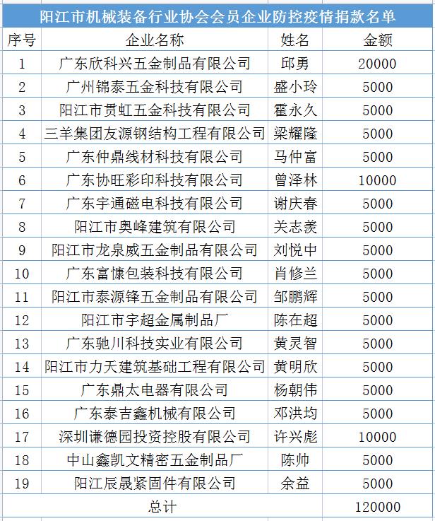 乍暖還寒二月天,捐贈善舉暖人心。2月21日,鑒于目前疫情嚴峻和疫情防控常態(tài)化工作需要,經陽東區(qū)總商會牽頭,陽東開發(fā)區(qū)管理局組織企業(yè)家奉獻愛心,陽江市機械裝備行業(yè)協(xié)會積極響應號召,會員企業(yè)們積極參加捐款。