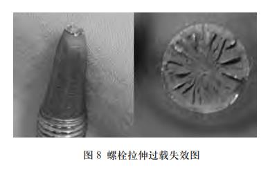3)裝配預緊力超過螺栓的正常承載能力而斷裂。螺栓典型的拉伸過載失效會在斷裂前拉伸并“縮頸”,如圖 8 所示。