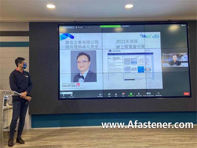 5月31日,13:30-16:00,香港螺絲業(yè)協(xié)會(huì)以線上會(huì)議形式舉辦《推廣智能復(fù)合加工技術(shù)拓展高增至緊固件市場(chǎng)》項(xiàng)目分享會(huì)。本次項(xiàng)目分享會(huì)旨在向香港中小緊企分享展覽活動(dòng)內(nèi)容及從海外業(yè)界所獲得的知識(shí)、行業(yè)市場(chǎng)資訊、監(jiān)管要求、當(dāng)?shù)厣虡I(yè)慣例及商業(yè)機(jī)會(huì)等,讓更多香港中小緊企對(duì)海外緊固件的業(yè)務(wù)發(fā)展有更深入的了解。