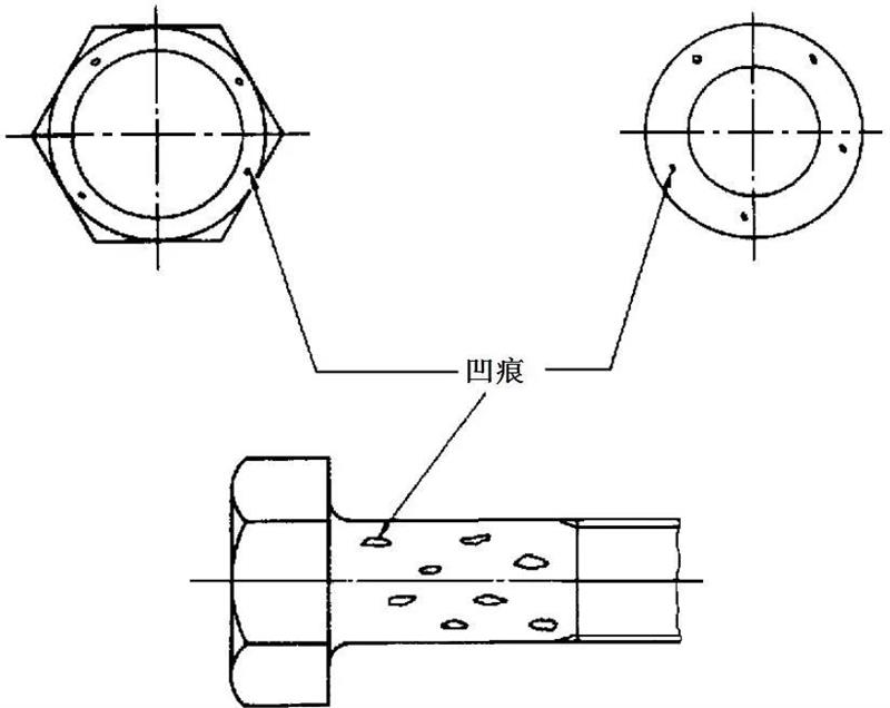 對角上的鍛造爆裂,不應(yīng)使對角寬度減小到低于規(guī)定的最小尺寸。螺栓和螺釘凹穴頭部隆起部分的鍛造爆裂,其寬度不應(yīng)超過 0. 06d 或深度低于凹穴部分。