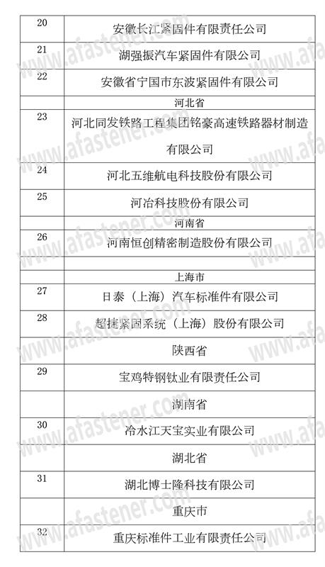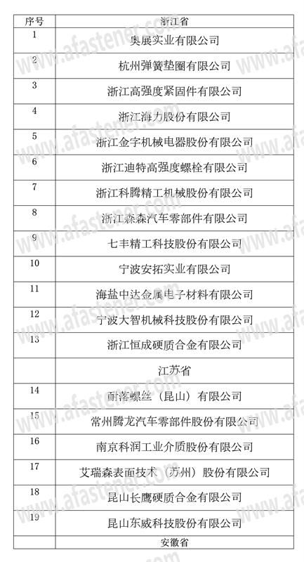 2022年國家級第四批專精特新“小巨人”企業(yè)公示名單中的緊固件企業(yè)