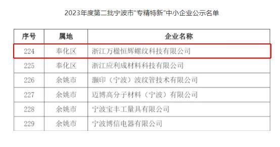 萬(wàn)楹恒輝榮獲“專精特新”企業(yè)稱號(hào)!寧波市管理創(chuàng)新提升四星級(jí)企業(yè)稱號(hào)!