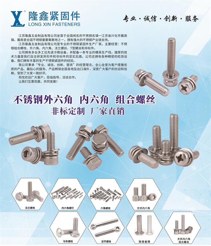 主營業(yè)務:不銹鋼組合螺栓、外六角、內六角、法蘭螺絲、T型螺絲、非標件。