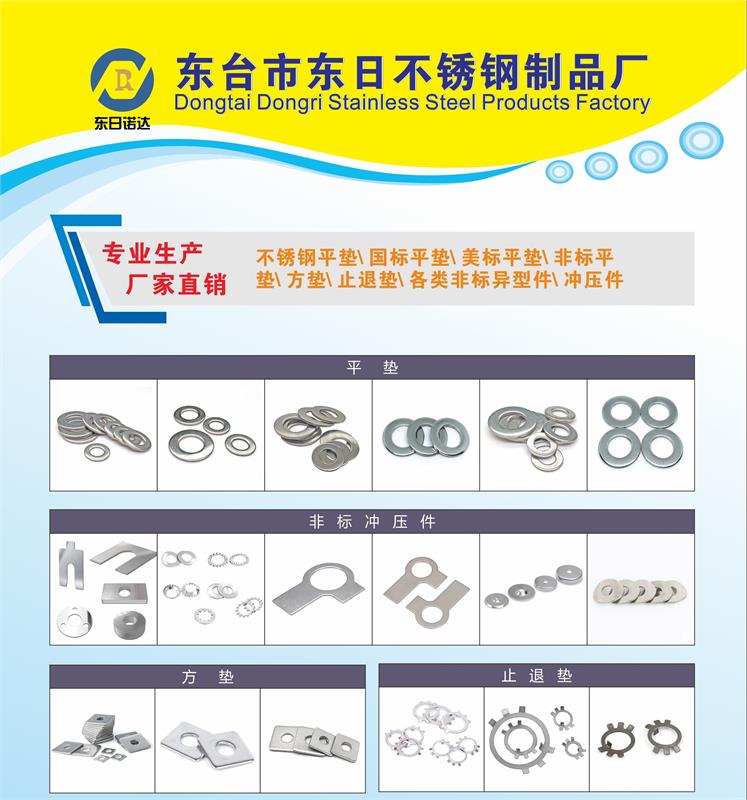 協(xié)會一行了解到東臺市東日不銹鋼制品廠專業(yè)生產不銹鋼平墊、國標平墊、美標平墊、非標平墊、方墊、止退墊、各類非標異型件、沖壓件等,材質包括304(L),316(L),2205.2507.310s,904.C-276.625等常見及特殊材質。